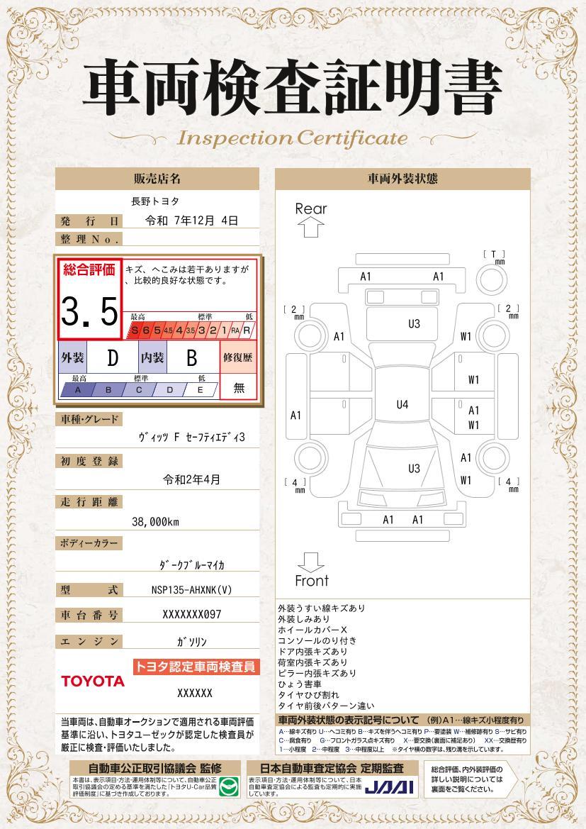 車両保証(ヴィッツ F セーフティーエディションIII:長野トヨタ自動車(株) Chu-CAR BOX安曇店)