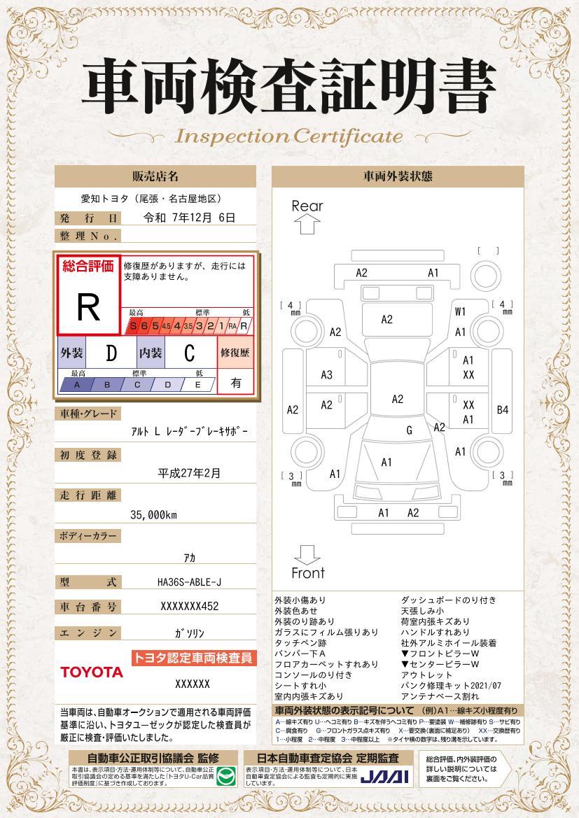 車両保証(アルト L:愛知トヨタ 高畑マイカーセンター)