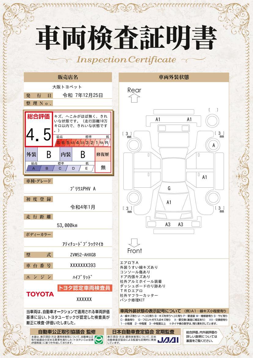 車両保証(プリウスPHV A:大阪トヨペット(株)U-Carランド枚方中央店)