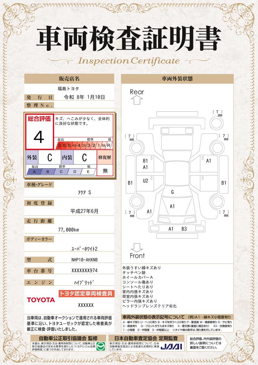 車両保証(アクア S:福島トヨタ自動車(株) 須賀川店)