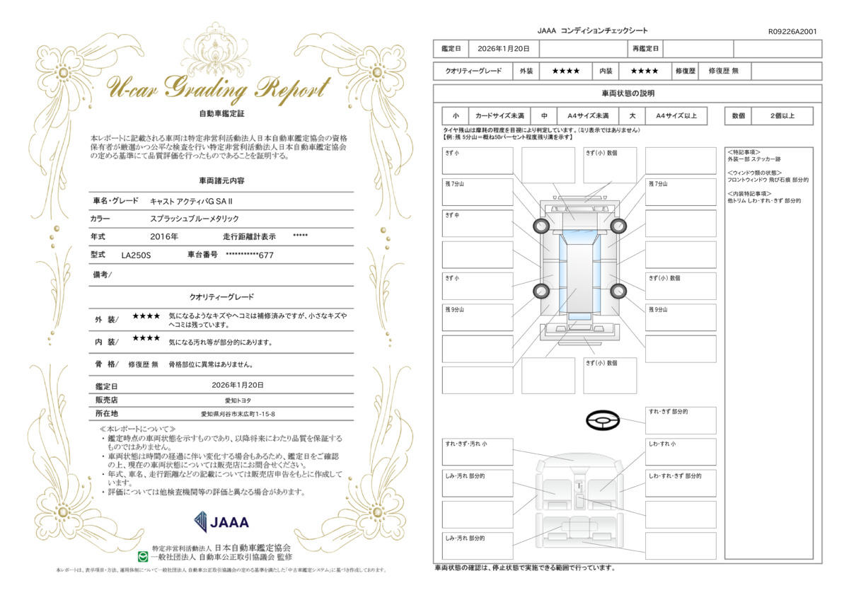 | 車両状態評価書 | ※クリックすると開きます![]() |