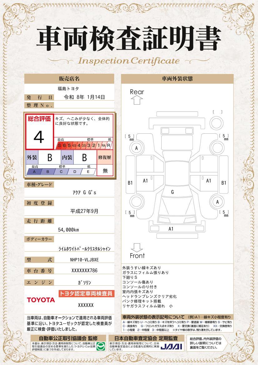 車両保証(アクア G G’s:福島トヨタ自動車(株) 郡山並木店)