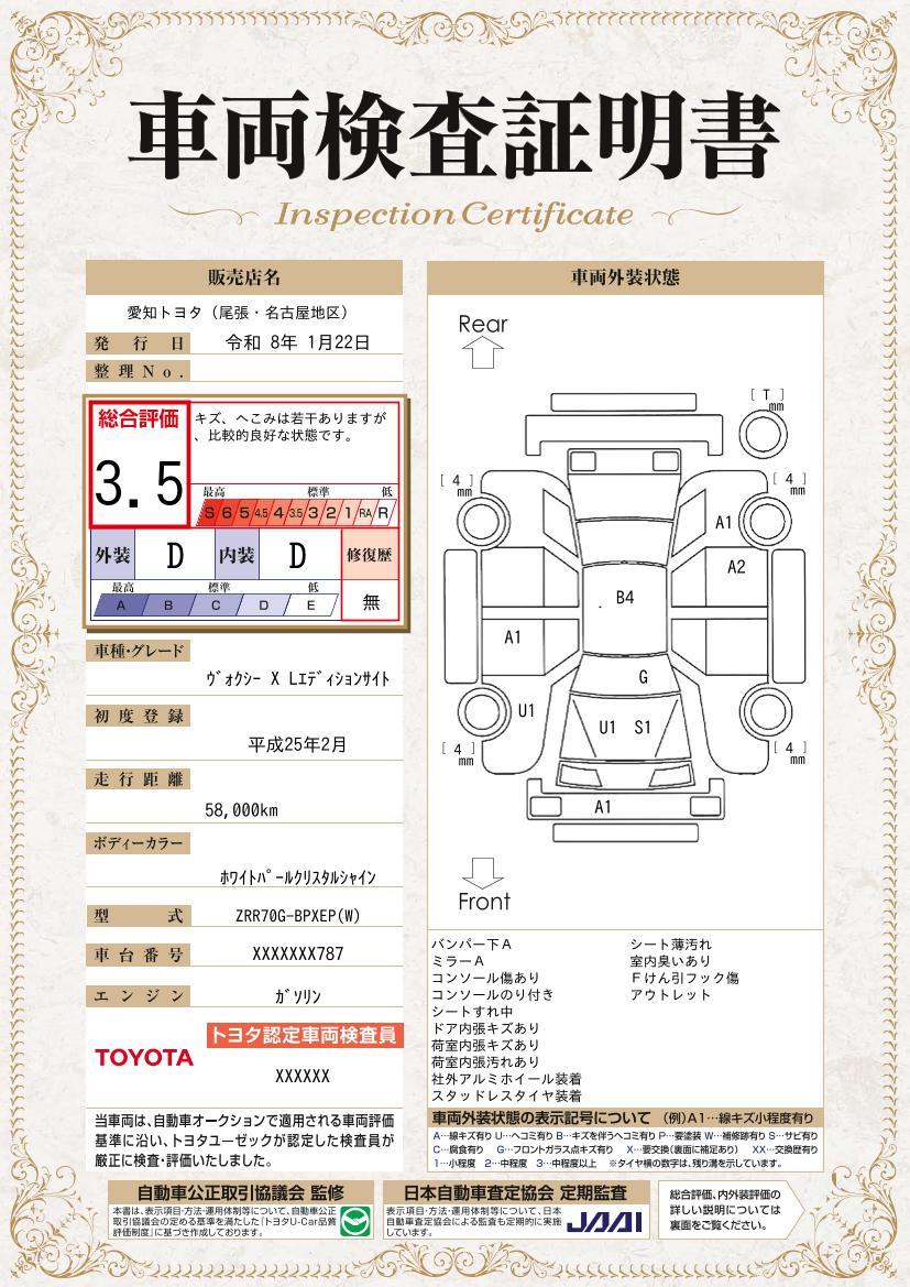 車両状態(ヴォクシー X Lエディション)