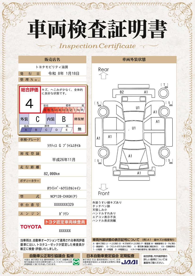車両保証(ラクティス G プライムスタイル:トヨタモビリティ滋賀(株)ウエルコム栗東U-CarLAND)