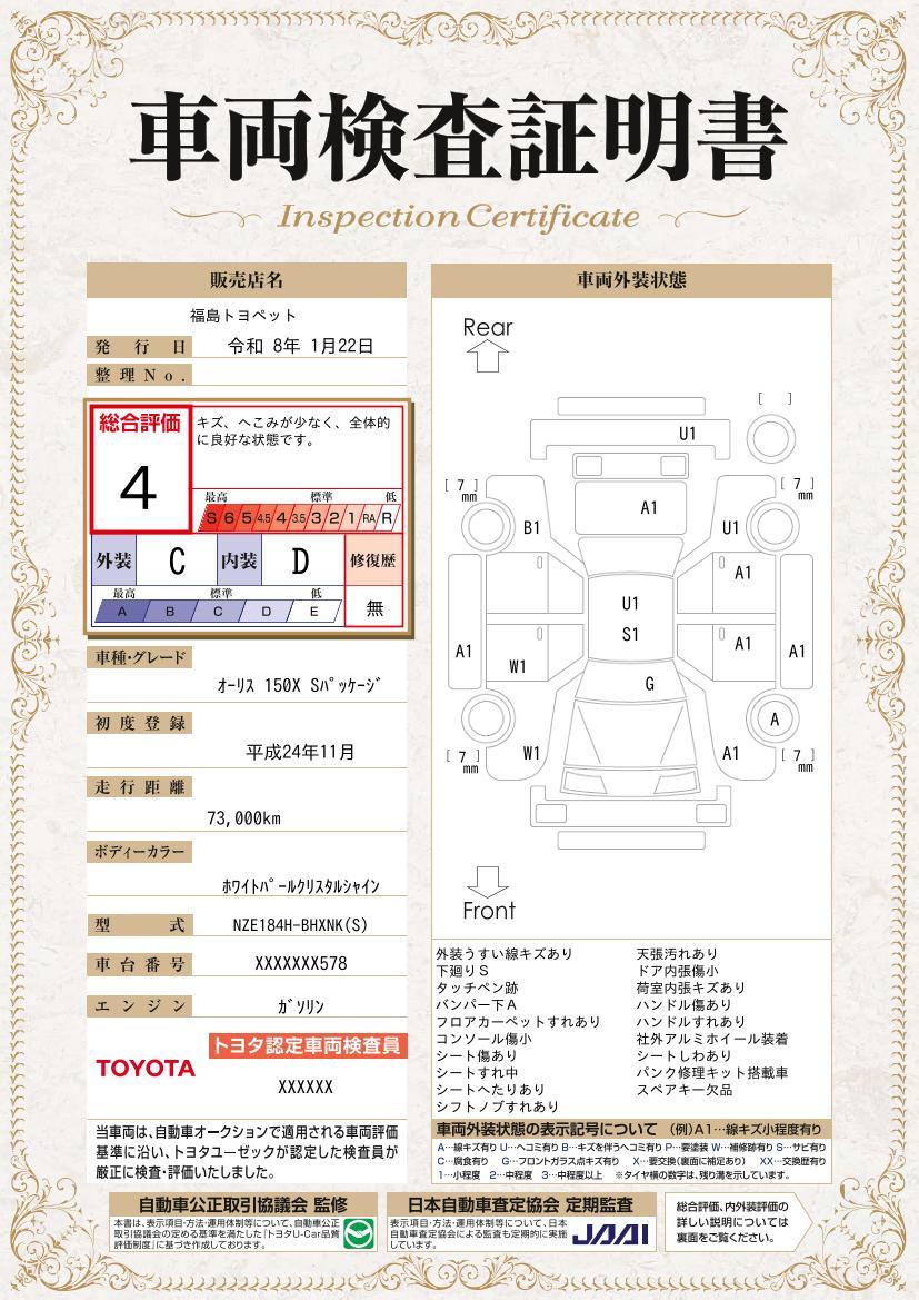 車両保証(オーリス 150X Sパッケージ:福島トヨペット(株) あいづ門田店)