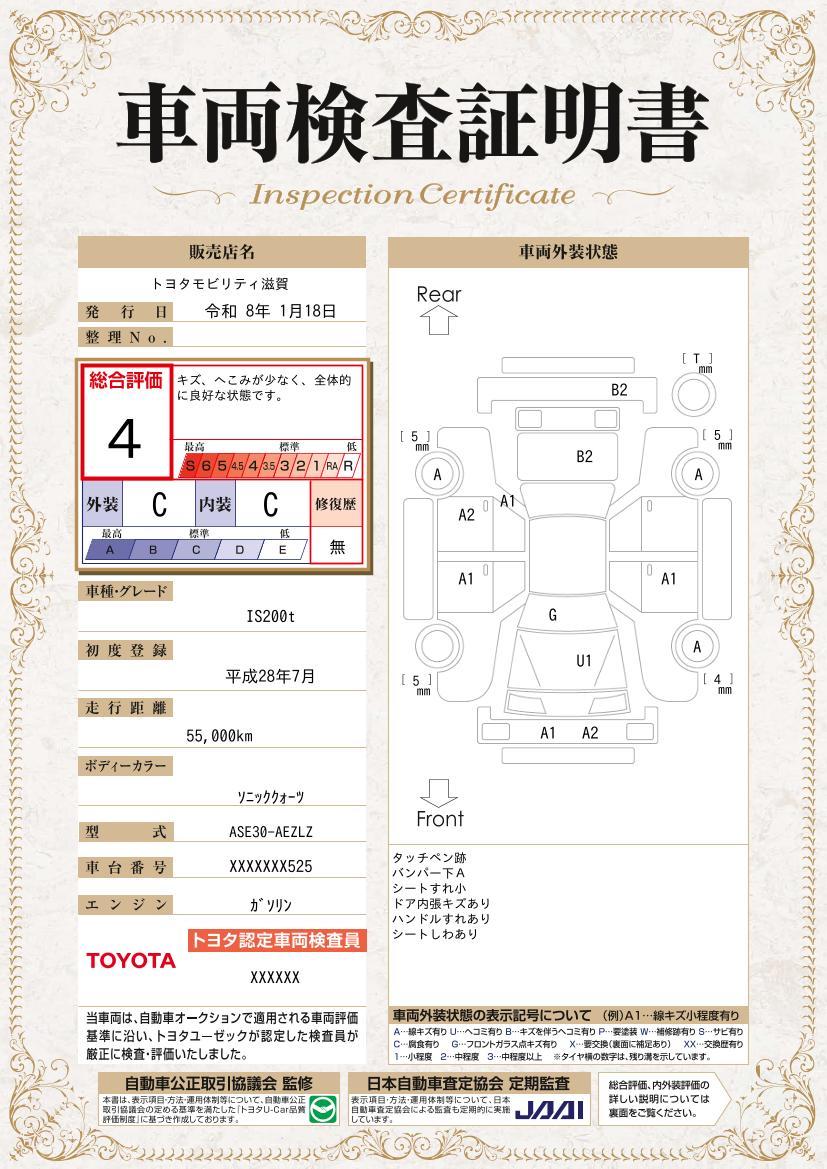 車両保証(IS IS200t:トヨタモビリティ滋賀(株)ウエルコム栗東U-CarLAND)