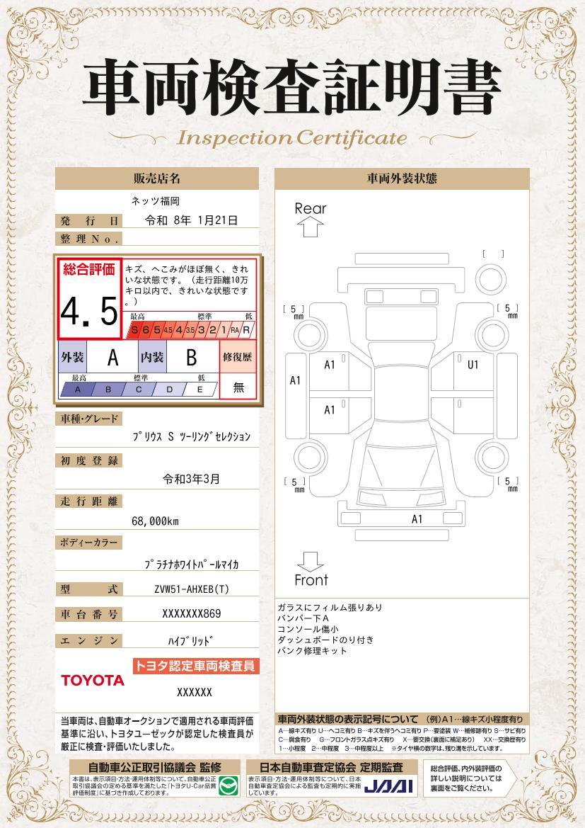 | 保証内容 | ロングラン保証1年<走行距離無制限> +ハイブリッド保証<保証期間は初度登録年月から10年目まで、もしくは3年間のいずれか長い方。但し走行距離20万キロまで> | ||