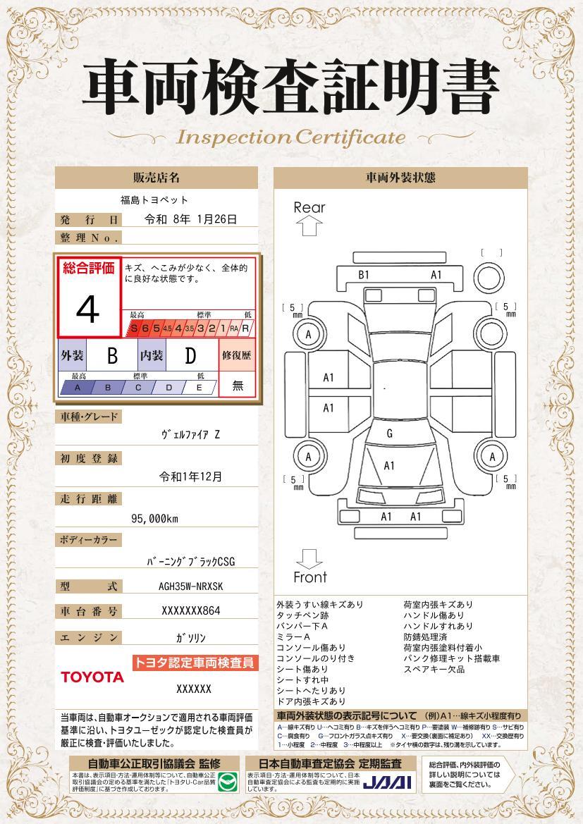 車両保証(ヴェルファイア 2.5Z:福島トヨペット(株) ふくしまU-Carセンター)