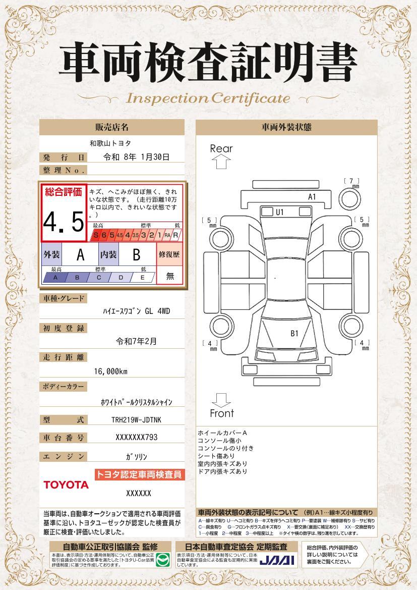 車両保証(ハイエースワゴン GL:和歌山トヨタ自動車(株) 岩出店)