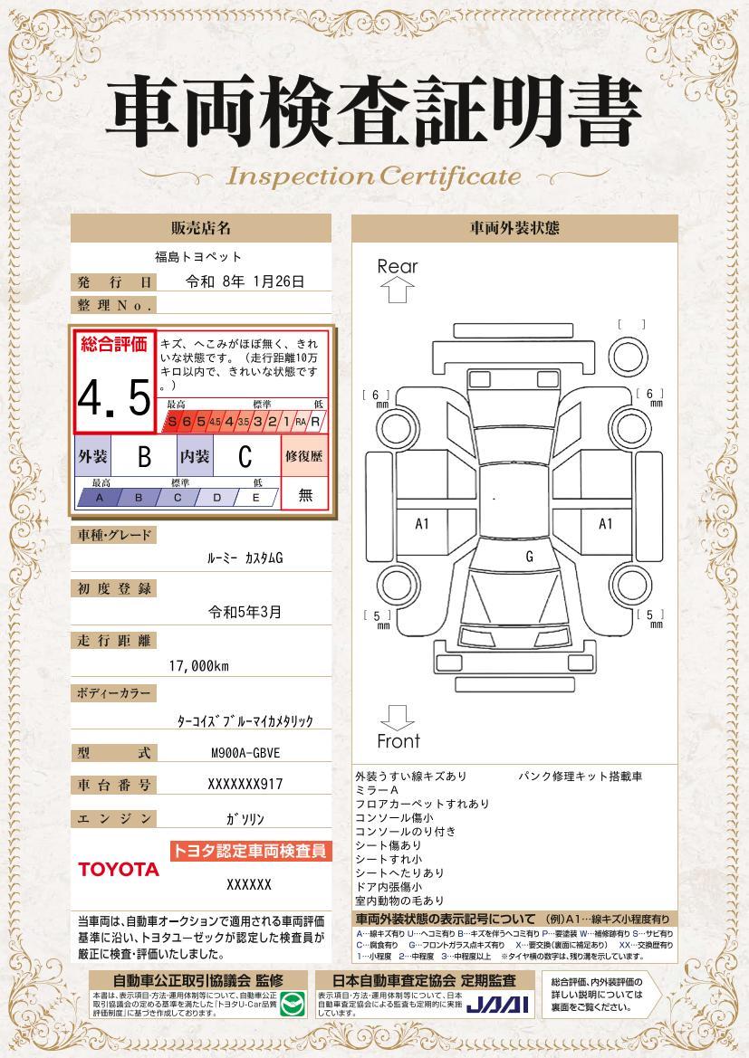 車両保証(ルーミー カスタムG:福島トヨペット(株) ふくしまU-Carセンター)