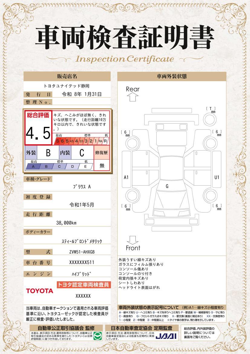 車両保証(プリウス A:トヨタユナイテッド静岡(株) 藤枝中央店)