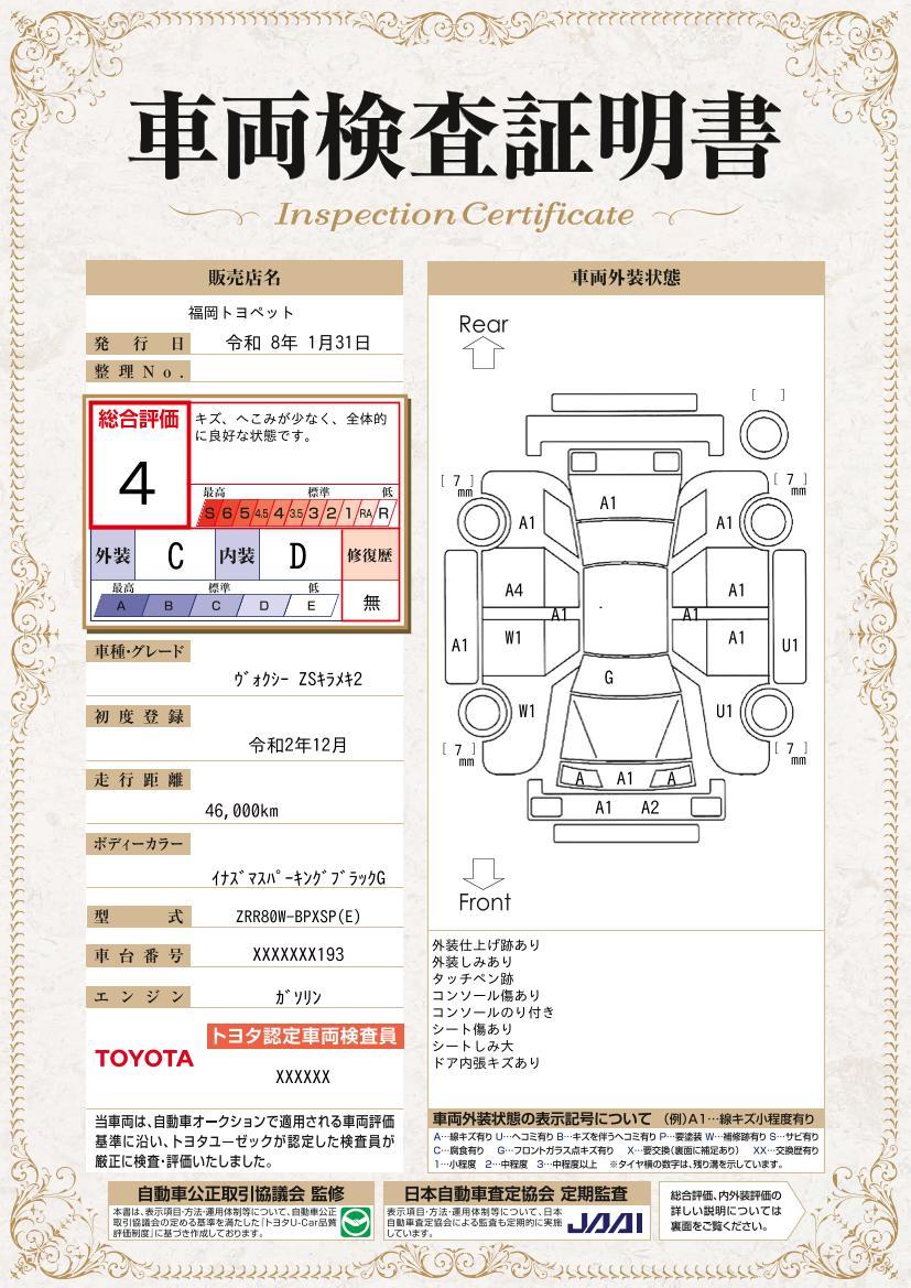車両保証(ヴォクシー ZS 煌II:福岡トヨペット(株) カーメイト久留米インター)