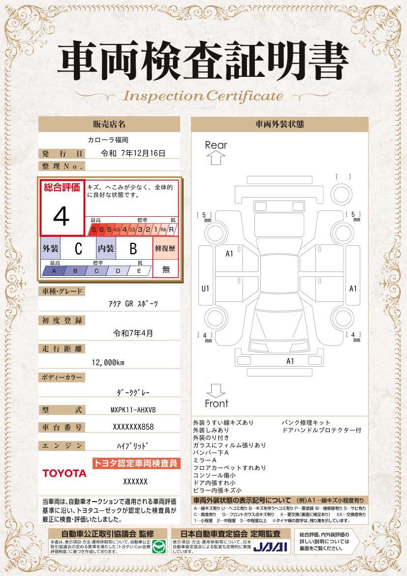 車両保証(アクア GRスポーツ:トヨタカローラ福岡 GR Garage福岡空港)