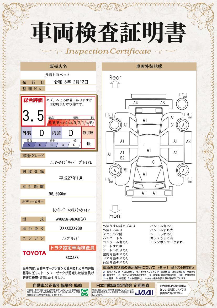 | 保証内容 | ロングラン保証1年<走行距離無制限> +ハイブリッド保証<保証期間は初度登録年月から10年目まで、もしくは3年間のいずれか長い方。但し走行距離20万キロまで> | ||