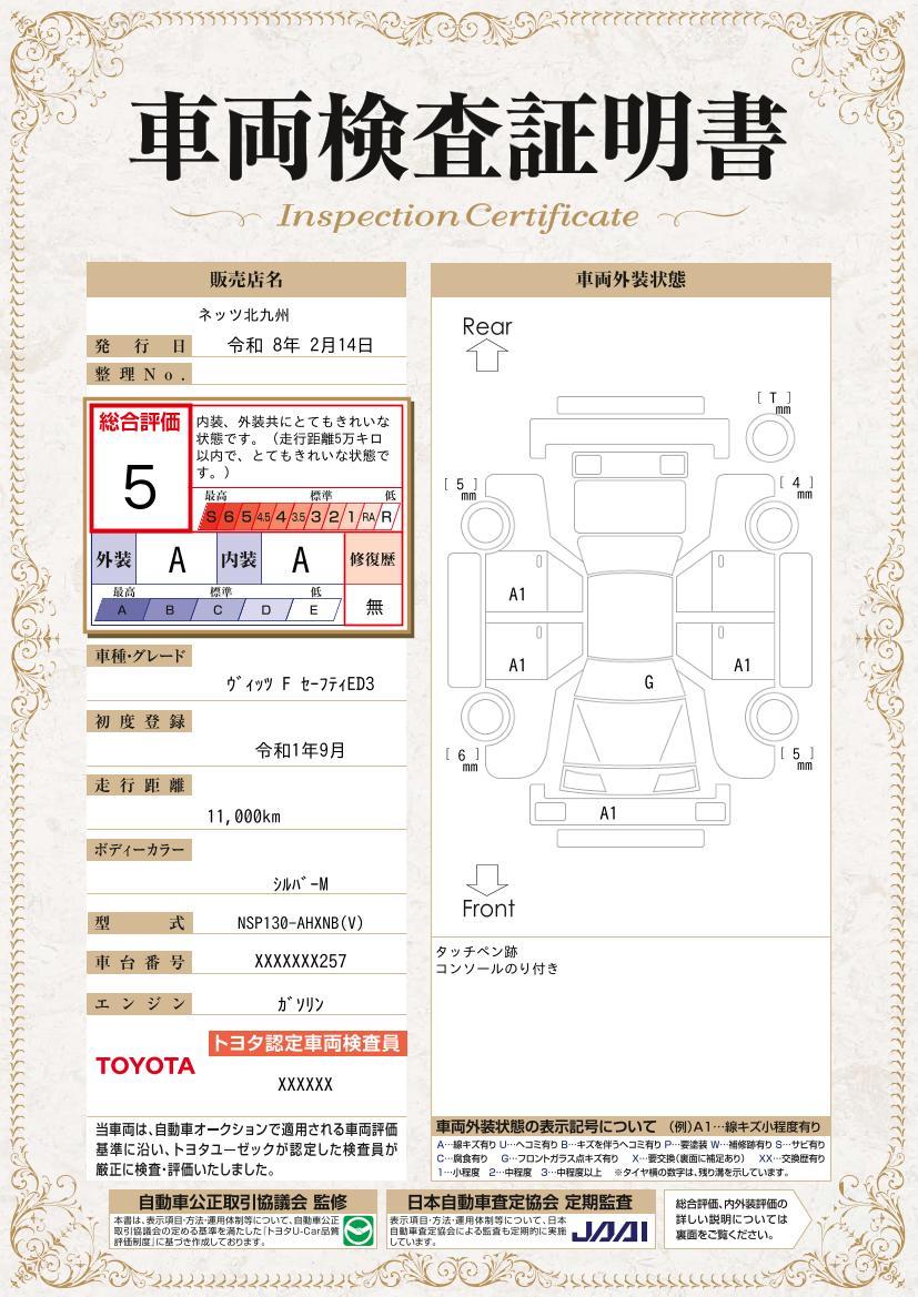 車両保証(ヴィッツ F セーフティーエディションIII:ネッツトヨタ北九州 鞍手商品化センター)