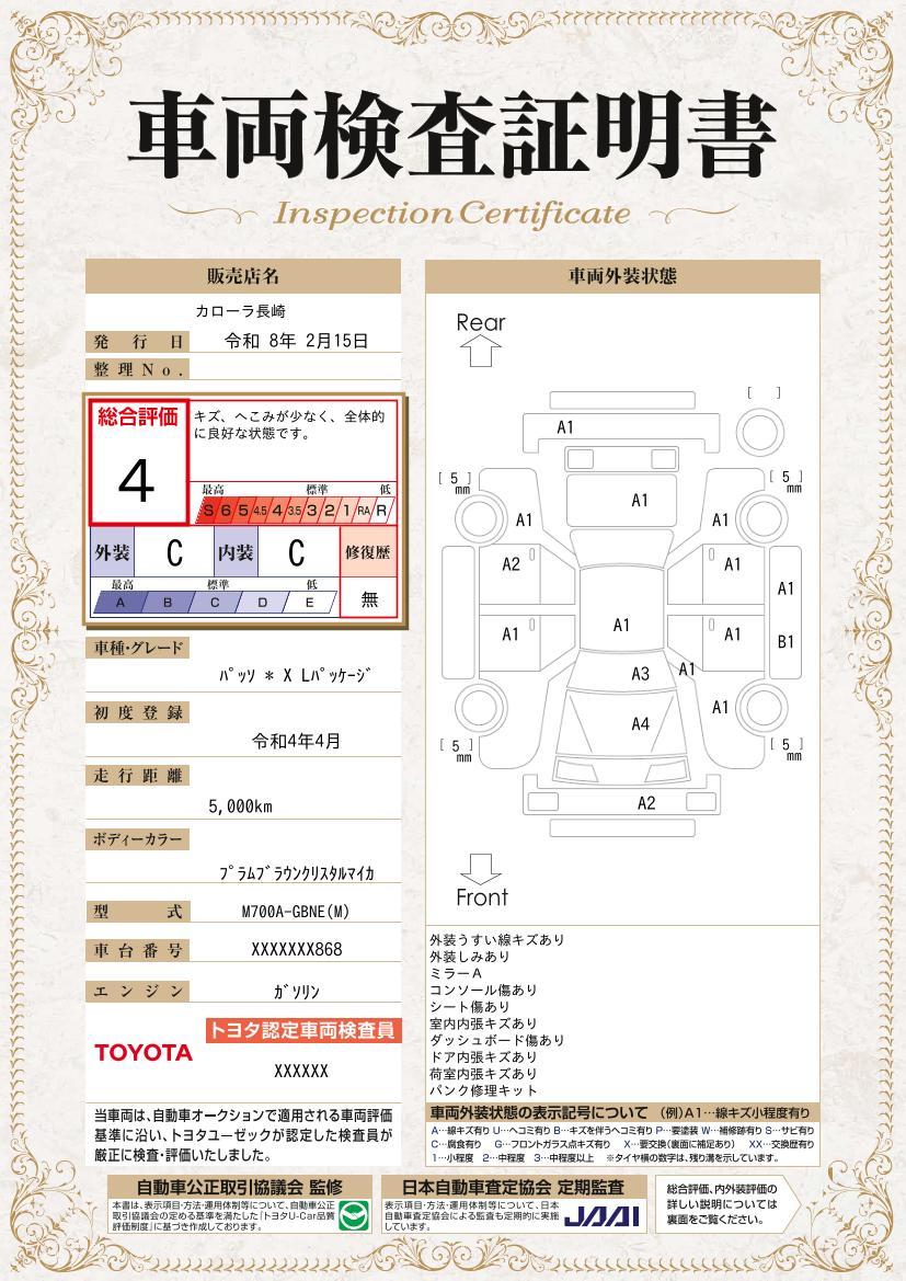 車両保証(パッソ X Lパッケージ:トヨタカローラ長崎株式会社 佐世保大塔店)