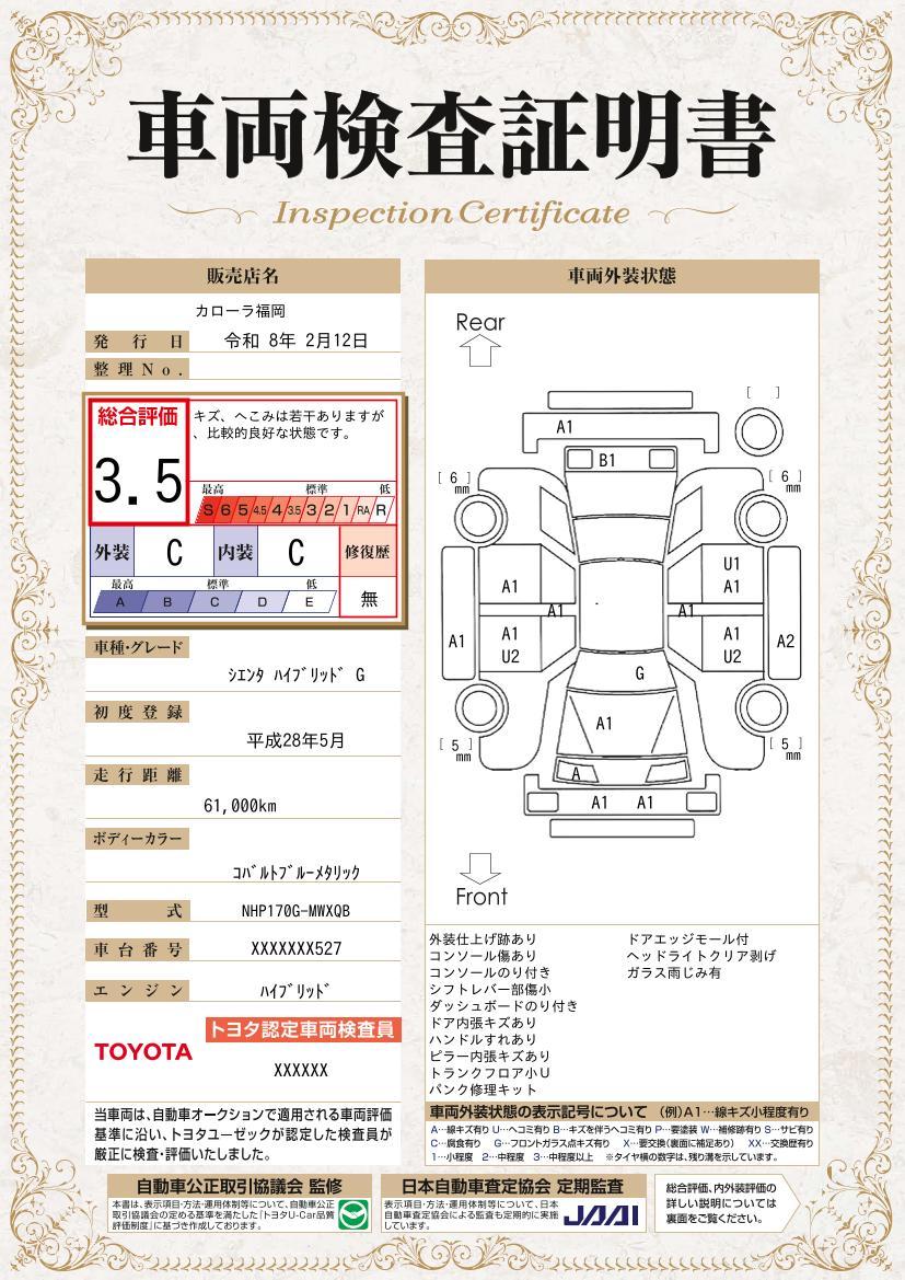 | 車両状態評価書 | ※クリックすると開きます![]() |