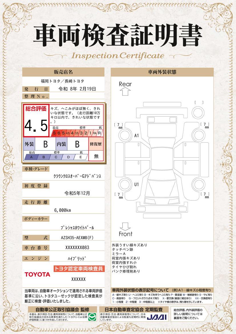 車両保証(クラウンクロスオーバー Gアドバンスド:福岡トヨタ自動車 福岡トヨタ特選展示場 北九州)