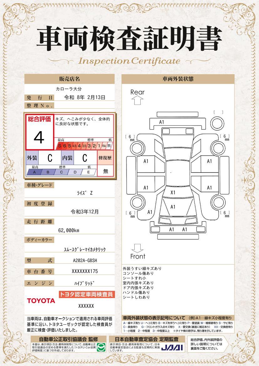 車両保証(ライズ Z:トヨタカローラ大分(株)大分東店 トヨタ認定中古車センター高城)