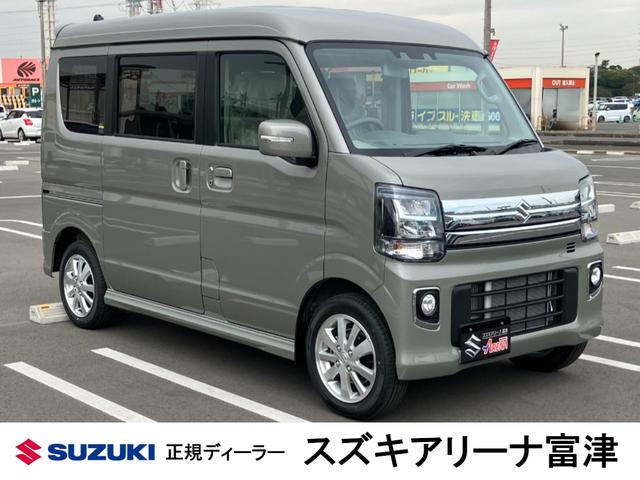 PAリミテッド 届出済未使用車 盗難防止 バックソナー 衝撃安全ボディー フロントパワーウインドウ キーレスキー 助手席エアバック エアバック Aストップ パワステ AC 横滑り防止 ABS レーダーブレーキ装着車 新色のアイビーグリーンのエブリイ 入庫です!